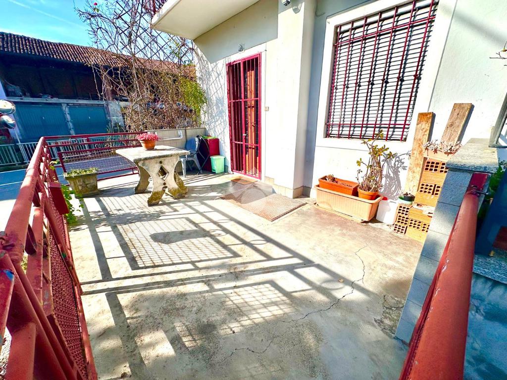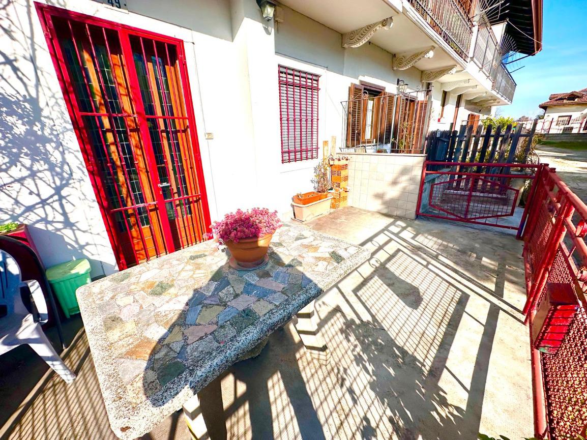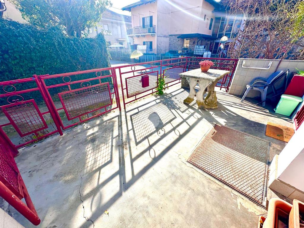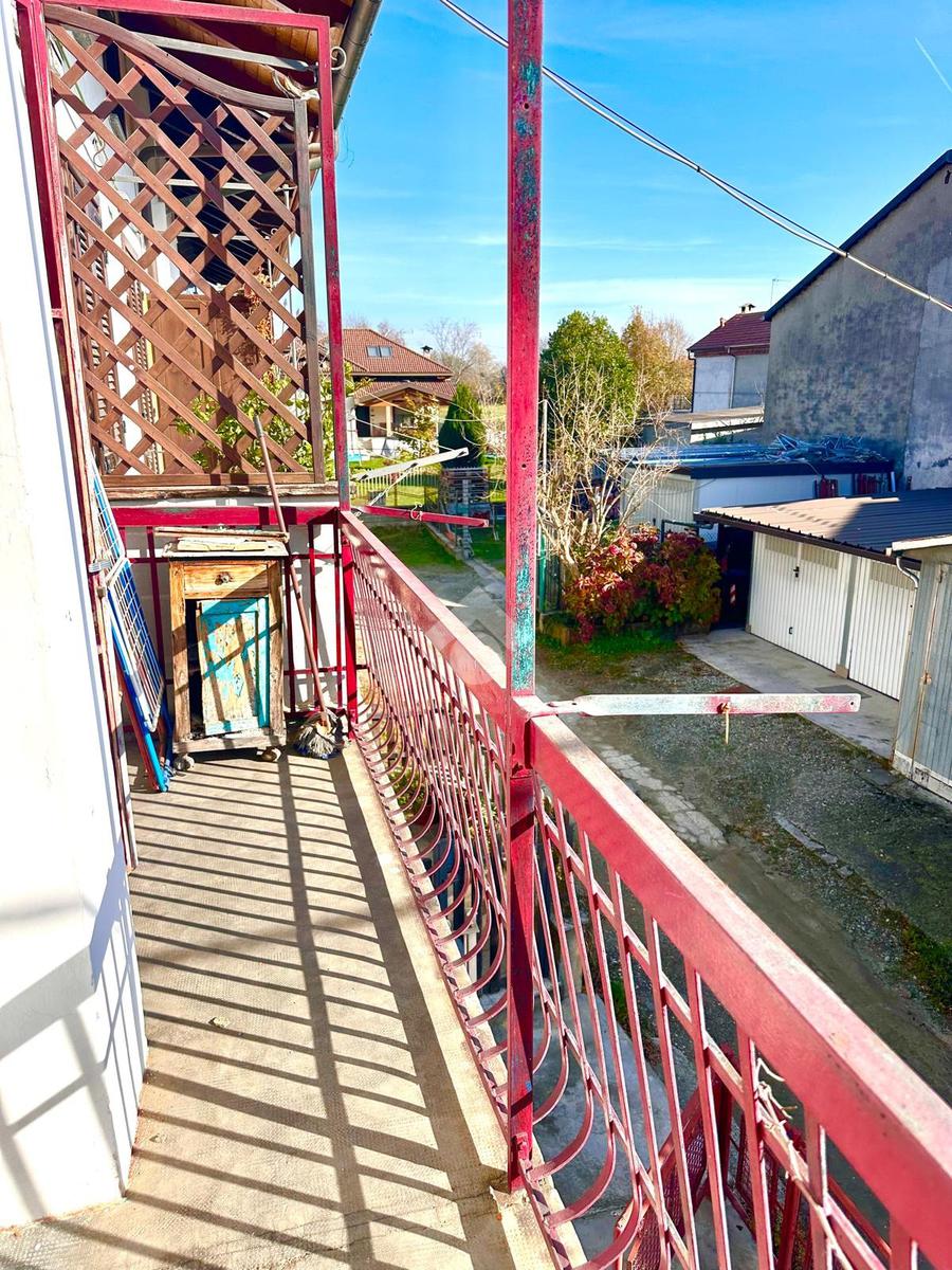 CAFASSE: CASA SEMINDIPENDENTE CON CORTLIE PRIVATO. Si accede da piccolo cortile recintato al piano terra e troviamo un soggiorno, cucina , e tramite scala a chiocciola si accede al piano primo composto da camera da letto, bagno con vasca e doccia , balcone ; ed al piano secondo abbiamo altra camera. Fronte casa si trova il box auto/ magazzino e altro piccolo cortile privato. Il riscaldamento è autonomo a metano.