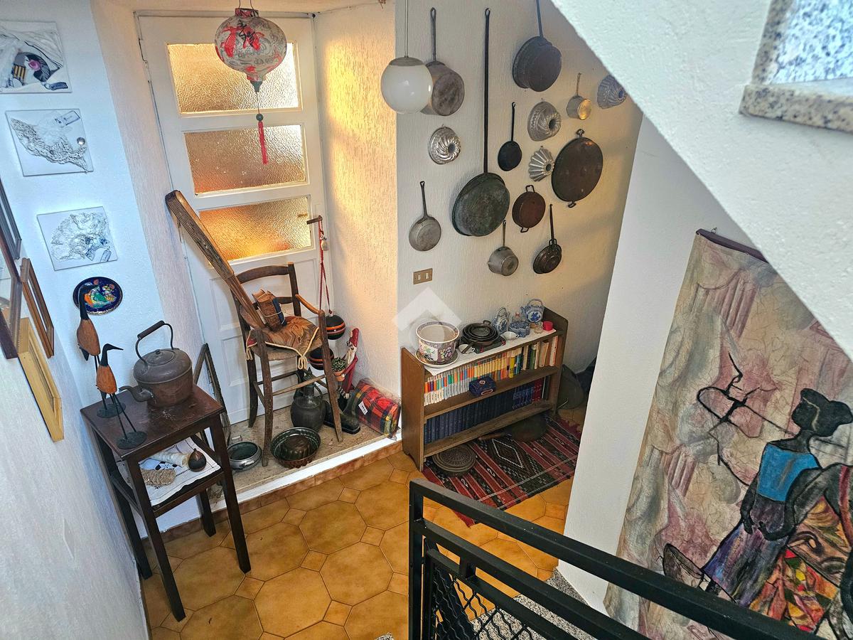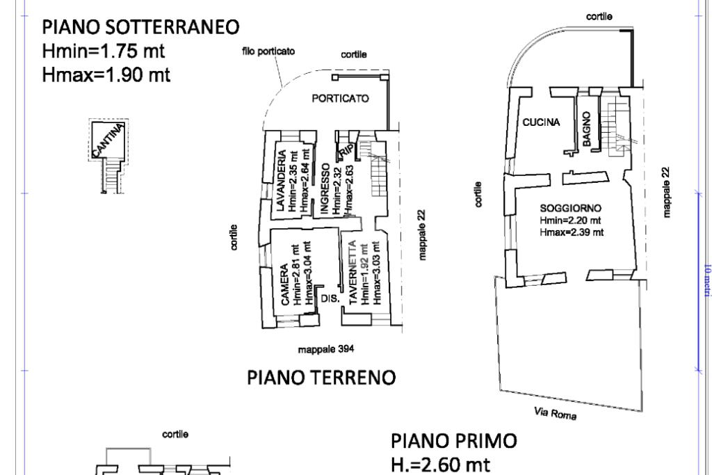 L’immobile è disposto su tre piani tutti collegati tramite vano scala interno. Al piano terreno si trova un ampio ingresso che collega il locale caldaia e due camere. Al piano primo si trova la zona giorno composta da cucina abitabile con affaccio sul terrazzo sul retro, di circa 20mq, e un ampio soggiorno con camino con accesso al terrazzo fronte casa di oltre 50mq. Al secondo piano abbiamo la zona notte composta di tre camere matrimoniali, tutte servite da balconi, e un secondo bagno. Al piano interrato si trova una piccola cantina.