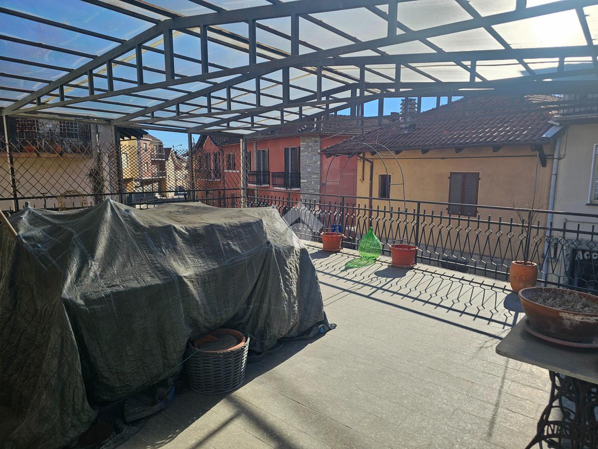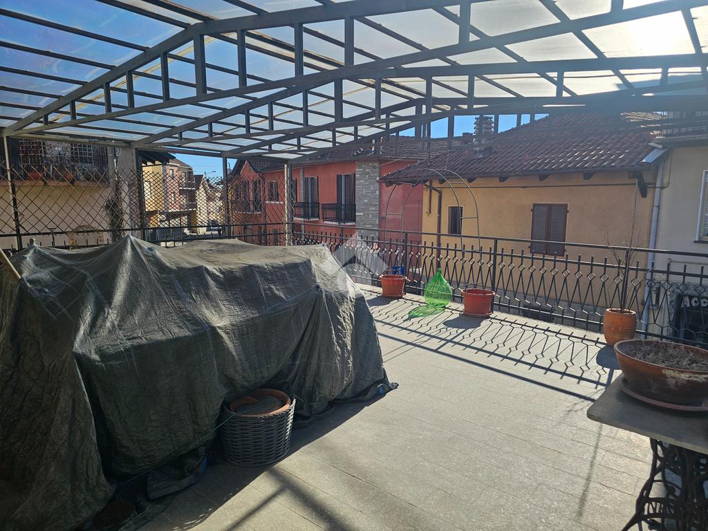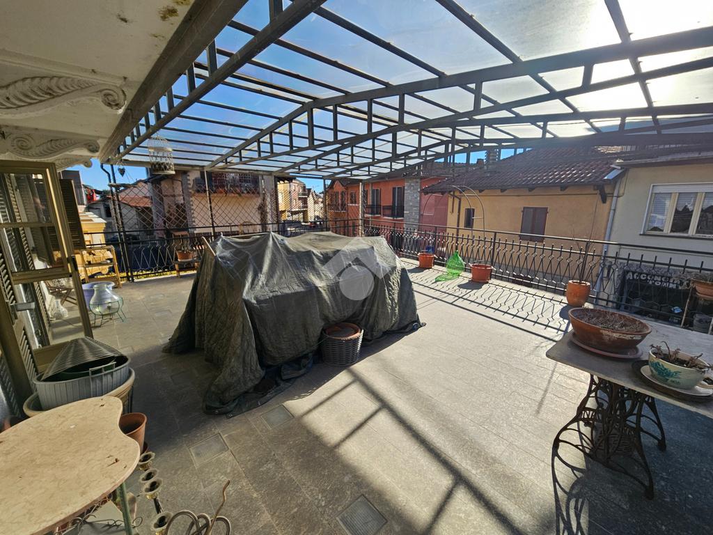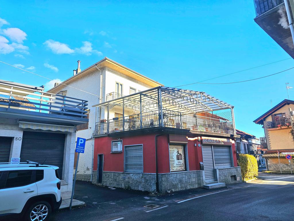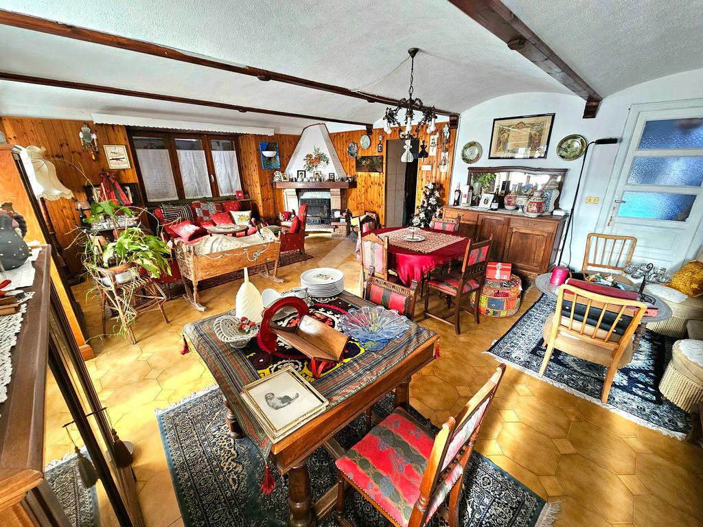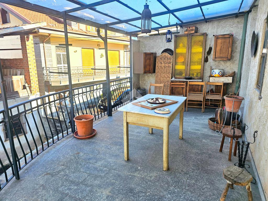 CAFASSE casa semindipendente su tre piani in pieno centro, con ampio terrazzo fronte e retro casa e magazzino sul retro a poca distanza da casa, buone condizioni di manutenzione ma stato originale.