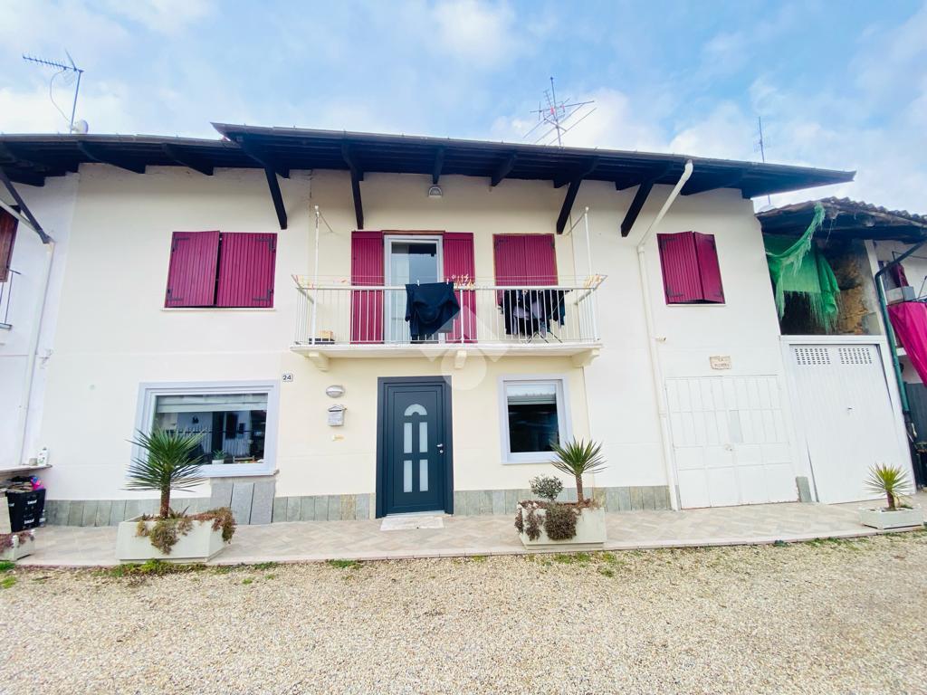 Al piano terra si trovano un soggiorno con camino a legna, una cucina abitabile, un bagno, una scala interna che conduce al piano primo e un box auto. Al piano primo sono presenti due camere matrimoniali, una camera singola, un bagno di servizio e un balcone. In adiacenza all’abitazione è presente un magazzino dotato di tettoia aperta. Tale struttura offre la possibilità di essere recuperata e trasformata in spazio ad uso abitativo e continuativo, da integrare al primo piano dell’abitazione principale.