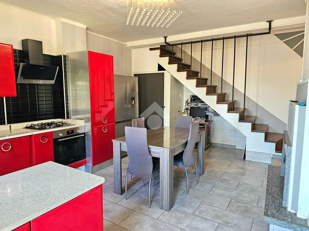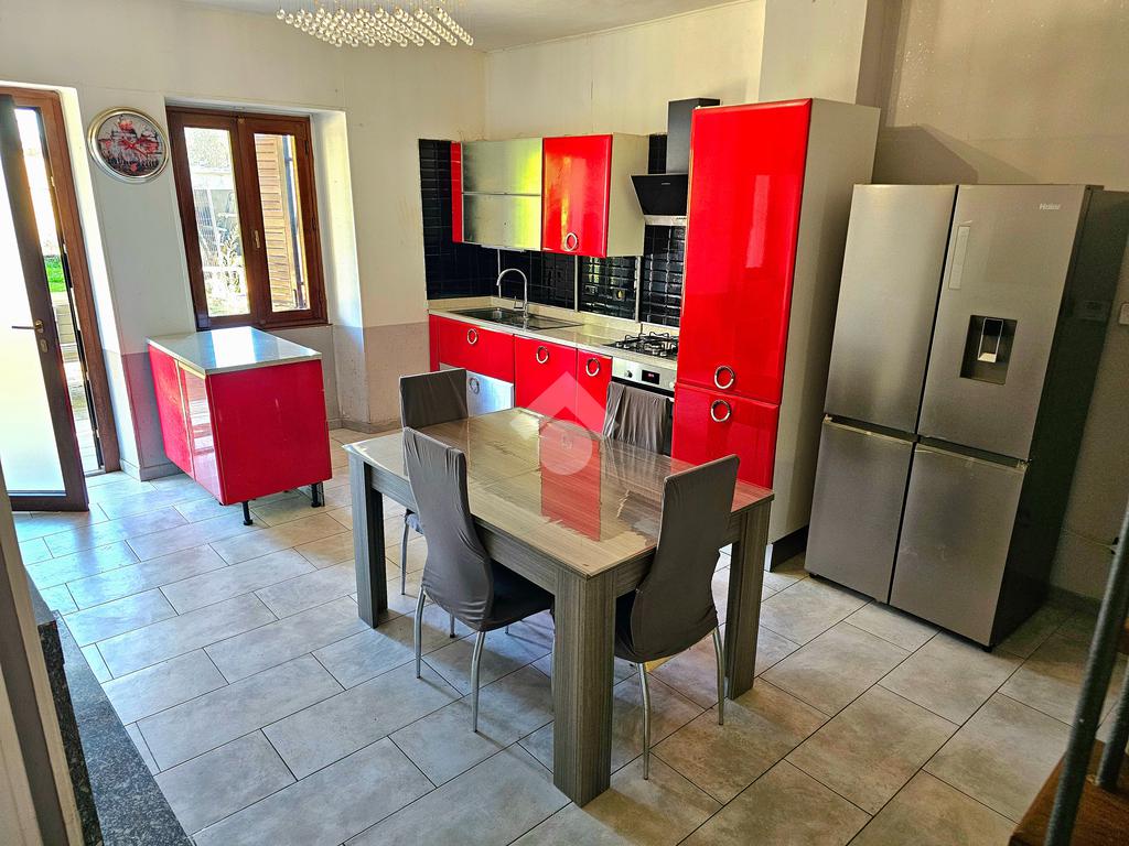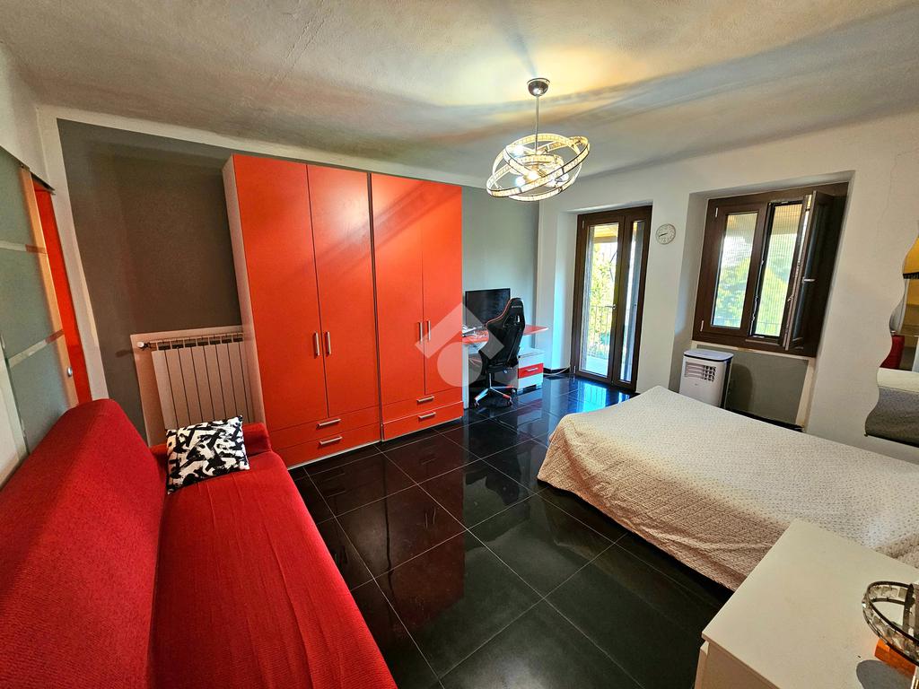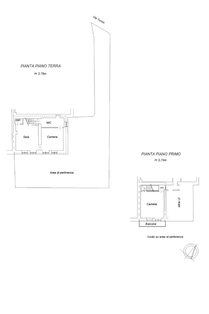 L'abitazione è disposta su due piani: al piano terreno abbiamo ingresso su cucina abitabile con camino, un bagno con doccia e una camera da letto volendo sfruttabile come salotto; al primo piano ampia camera matrimoniale con balcone e bagno di servizio.