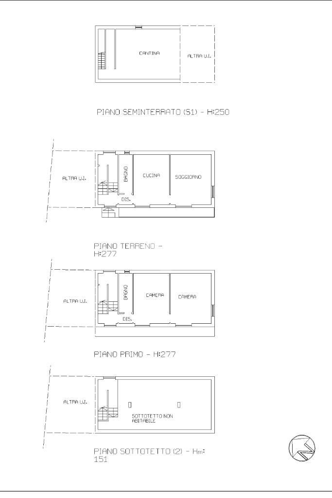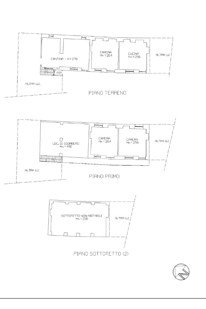 L'immobile si divide in due parti: una originale degli anni '60 circa e l'altra piu vecchia completamente da ristrutturare. La prima parte si compone di box al piano seminterrato con grande cantina; piano rialzato con cucina abitabile, sala e wc; piano primo con due camere da letto e wc. Questa porzione è stata parzialmente rivista per cui si presenta in buono stato.
